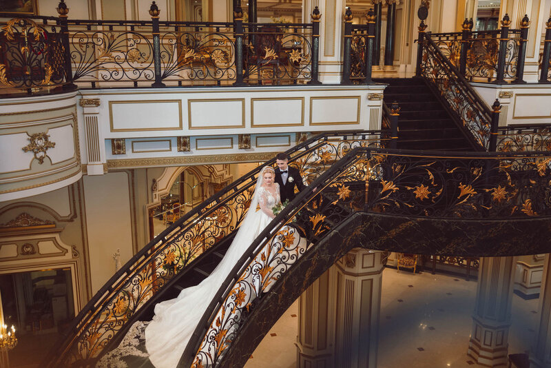The celebration unfolded at The Legacy Castle, where grandeur met modern romance. Laura and Alex began their day surrounded by intricate architecture and golden light, their portraits capturing a sense of calm anticipation and quiet elegance within the castle’s opulent halls.