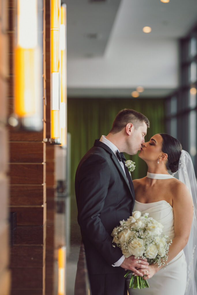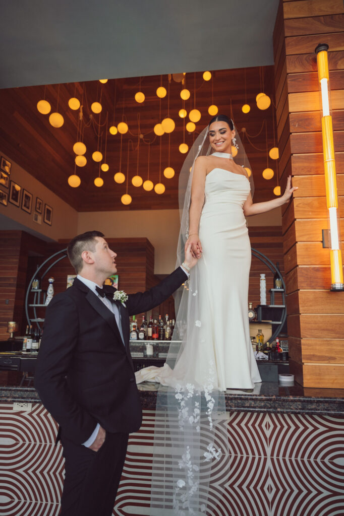 One of the most unforgettable moments of the day came when the couple asked for a portrait at the bar — a quiet, personal request that spoke volumes about their connection. Inspired by a photograph they’d seen from another wedding, this image became one of their favorites, capturing the soft glow of the venue’s lights and the elegance of the bar’s sleek design. The simplicity of the moment was the perfect contrast to the whirlwind of their celebration, and it was one I felt honored to document.